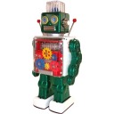 ■ブリキのおもちゃ GEAR ACE (ブリキ屋)□ ギアタイプロボットがバージョンアップ。両手を振り、両肩部のアンテナを動かしながら歩行します。胸部のギアが回り、頭部のカプセル部が光ります。メタリッ...