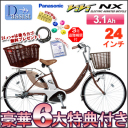 キーキャップ・ロック・カバー・防犯登録後ろカゴ&防犯ネット!最安電動自転車!【即納!24インチは後ろカゴ付き!豪華7大特典!防犯登録!純正キーキャップ!3年盗難補償!】2012 パナソニック ナショナル リチウム ビビ ViVi NX 24インチ 3段変速 3.1Ah BE-ENNX434【後ろカゴセット価格!お買い物 電動自転車 通勤 通学】 当店だけ純正キーキャップ付き! 品名ビビ・NX品番BE-ENNX434寸法全長1,790mm全幅570mmハンドル高さ980-1,025mmサドル高さ755-885mmタイヤ24×1 3/8WO軸間距離1,...