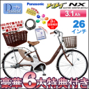 ■全品ポイント3倍■ロック・カバー・防犯・キーキャップ!後ろカゴ特別価格!【即納可能!期間限定特別価格!豪華6大特典!純正キーキャップ付き!3年盗難補償付き!軽量!後ろカゴ特別価格!】2012 パナソニック Panasonic リチウム ビビ ViVi NX 26インチ 3段変速 3.1Ah BE-ENNX634【お買い物に!電動自転車 アシスト通勤 通学】 品名ビビ・NX品番BE-ENNX634寸法全長1,880mm全幅570mmハンドル高さ1,010-1,060mmサドル高さ765-895mmタイヤ26×1 3/8WO軸間距離1,175mm総車両質量24.4kgフレームU...