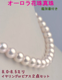 真珠科学研究所・真珠鑑別鑑定書付最高品質あこや本真珠花珠ネックレスセット 結婚・結納におすすめ 【オーロラ花珠真珠ネックレスセット・鑑別付】本真珠 イヤリングorピアスセット/8.0mm〜8.5mm 結婚30年目の真珠婚にパール2点セット 送料無料【楽ギフ_包装】10P3Oct12 楽ギフ対応について 【N】【Z】 日本が世界に誇れる宝石として知られるアコヤ真珠。憧れの花珠本真珠ネックレスです。しかもオーロラ花珠真珠...