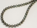 パープルの干渉色が鮮やかな南洋黒蝶真珠ネックレス[スピード配送] 「タヒチ黒蝶真珠 パールネックレス グリーン系 8.3-10.3mm A〜BAB〜C セミラウンド〜オーバル ビーンズ(silver)」 (本真珠・黒真珠) パープルの干渉色が強めのシックなグリーンカラーが魅力的な黒真珠ネックレスです。エクボやキズは多めですが黒真珠ならではの艶やかさを充分お楽しみいただ...