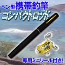 「ちょい釣りに!携帯ペン型!小型リール付」コンパクトロッド ブラック コンパクトロッドとリールのセットです。堤防でのハゼ・アジ・アイナメ・カサゴつりに。ボート・氷穴のワカサギ釣り、テナガエビ釣り等、旅行・散歩にどうぞ...