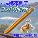 ポケットに収まるコンパクトつり竿!チャオ◆コンパクトロッド&リール◆携帯ペン型釣り竿GD 携帯ペン型 コンパクトロッド リール付 ゴールド ☆ 携帯用釣竿 コンパクトロッド ゴールドカラー 専用リール付き ☆ 携帯時はペン型 約20.5cm 伸ばすと...