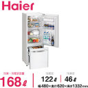 ハイアール 冷凍冷蔵庫 JR-NF170E(W) 168L(冷蔵室:122L 冷凍室:46L) ◆お取り寄せ商品★ひとり暮らしの強い味方、冷凍食品を大量保存できる2段式フリーザー。ワンルームに置いても静かな運転音●有効内容積:168L(冷蔵室:122L ...
