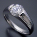 1カラット版:甲丸リングにダイヤモンドを埋め込んだ婚約指輪[1ct-BE58] 当店手作りのオリジナル商品 甲丸リングにダイヤモンドを埋め込んだデザインを作りたくて作りました。ダイヤモンドはわざとサイドを見せるように作っています...