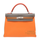 エルメスのインスピレーションがカタチになった2012-13年秋冬コレクションの最新アイテム、ケリーアルルカン!!エルメス ケリー アルルカン 32 内縫い オレンジ/エタン/サンギーヌ トリヨンクレマンス シルバー金具 【Luxury Brand Selection】 Hermes Kelly arlequin bag 32 retourne Tri-color Orange/Etain grey/Sanguine Clemence leather International Shipping and Duty Free Available for this item 国際配送&免税対象商品 エルメスケリーアルルカン32cm。エルメスのインスピレーションがカタチになった2012-13年秋冬...
