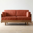 ファブリッククッション付き総革ソファ ラブ [画像(上)の説明]味わいのあるオイルレザーとチェックのファブリックのコンビネーションがいいバランスのソファ。レザーもファブリックもイタリア製の質の...